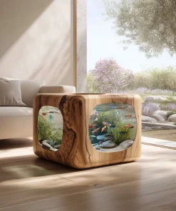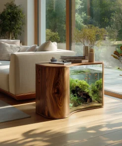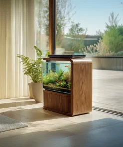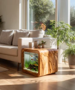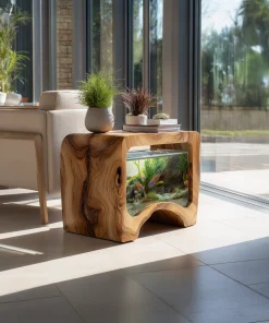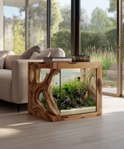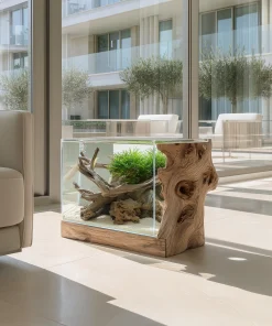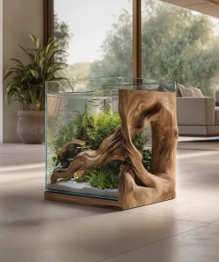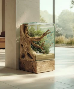 Vertical Wooden Aquarium Display With Sculptural Branch Form