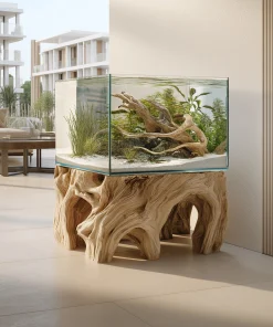 Sculptural Root-Form Aquarium Stand With Rectangular Glass Tank