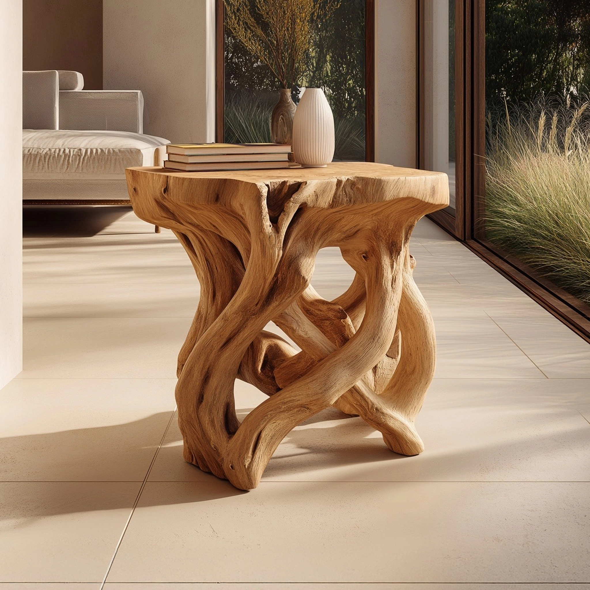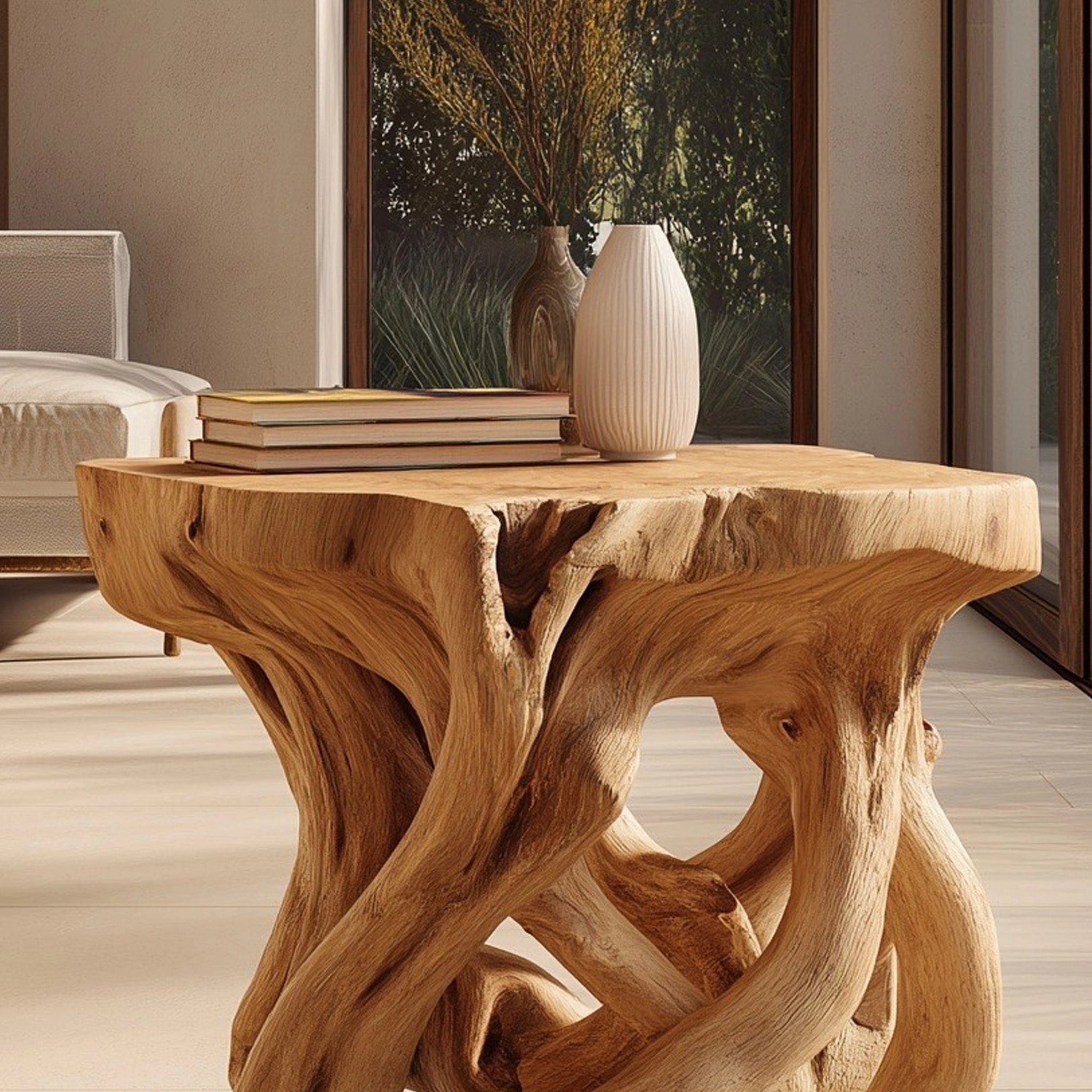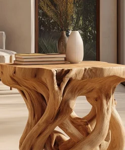 The Crossed Flow Wooden Sculptural Side Table is designed as a refined accent piece that combines structure, movement, and function. The intersecting base creates a sense of motion while maintaining stability and proportion.
