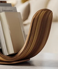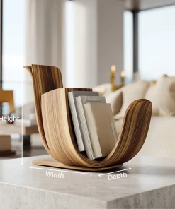 The Curved Grain Wooden Magazine Holder combines functional storage with sculptural form. Its flowing silhouette and seamless curves create a calm visual presence, allowing printed materials to be displayed rather than hidden.