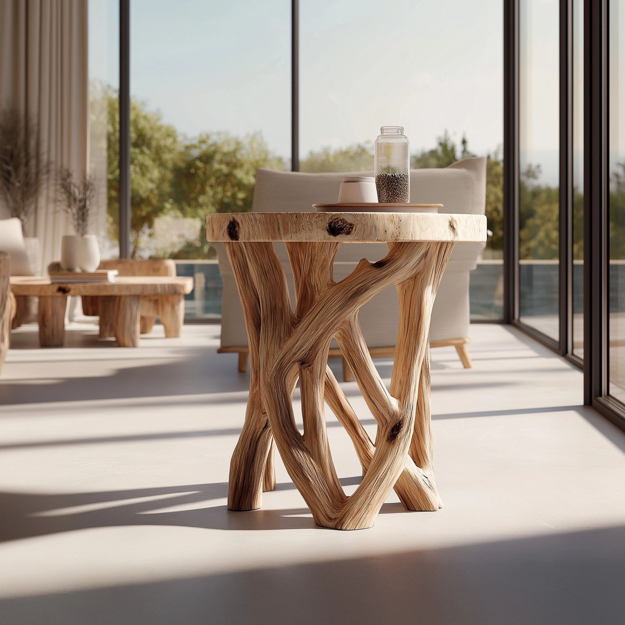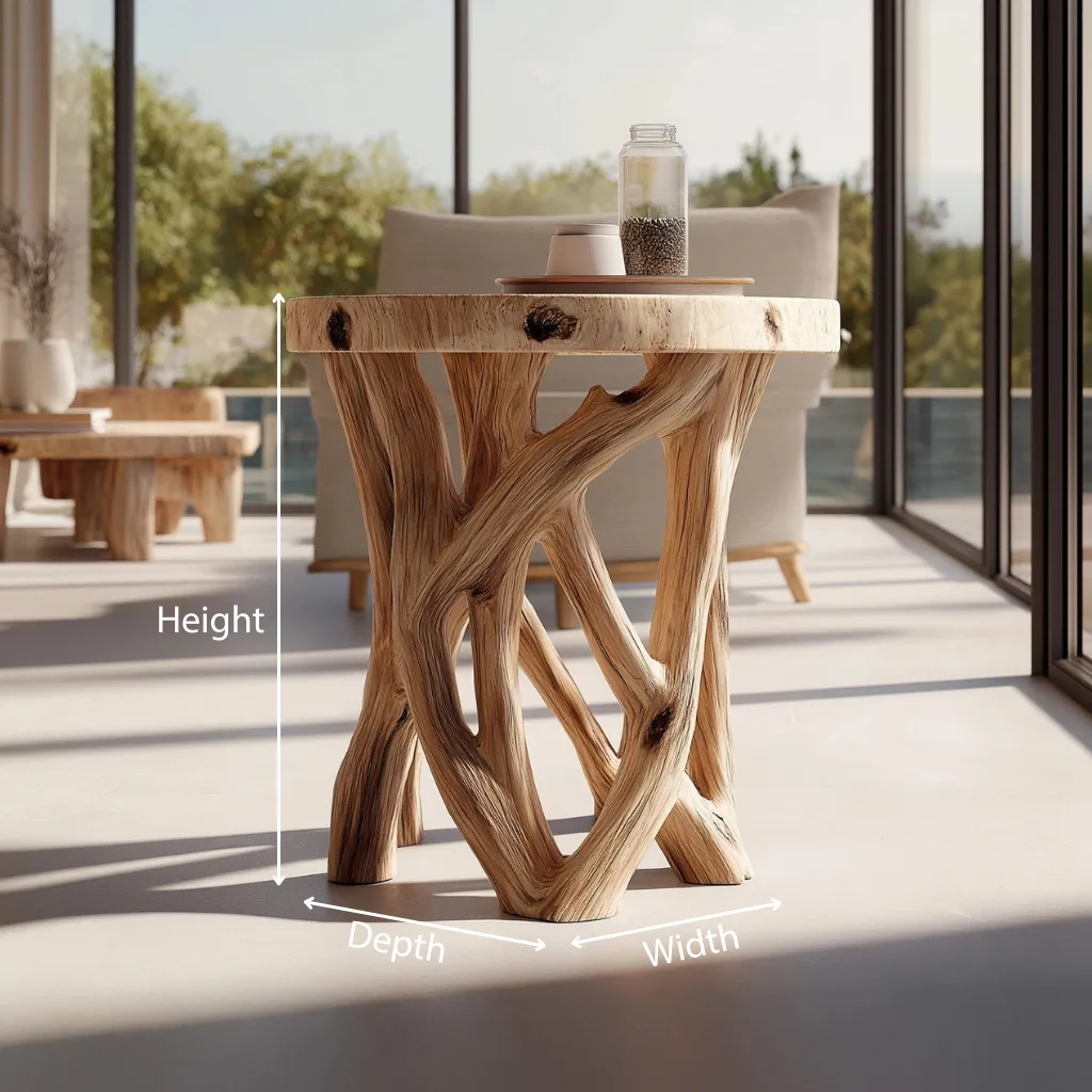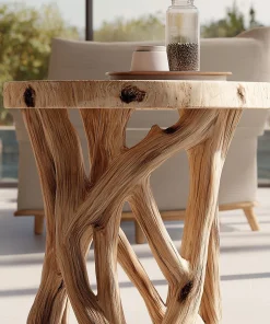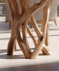 The Interlaced Grain Solid Wood Side Table is defined by its crossing structural elements and expressive grain flow. The design balances sculptural form with everyday usability, creating a table that feels grounded yet visually dynamic.