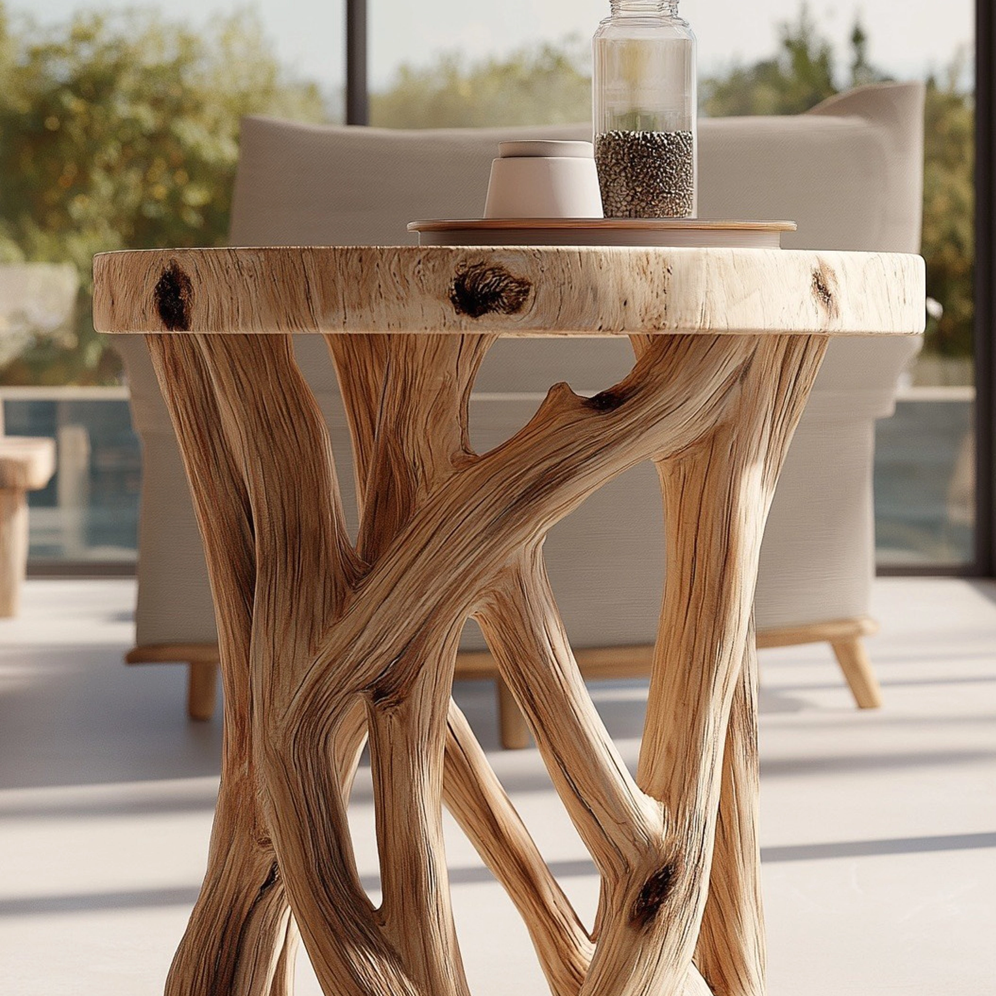 Suitable as a side table, occasional table, or sculptural accent, this piece integrates seamlessly into living rooms, lounge areas, or covered outdoor spaces with modern or organic architectural styling.