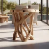 Its low height and substantial mass make it suitable as a side table, accent table, or sculptural stand. The proportions allow it to anchor seating areas without overpowering surrounding furniture.