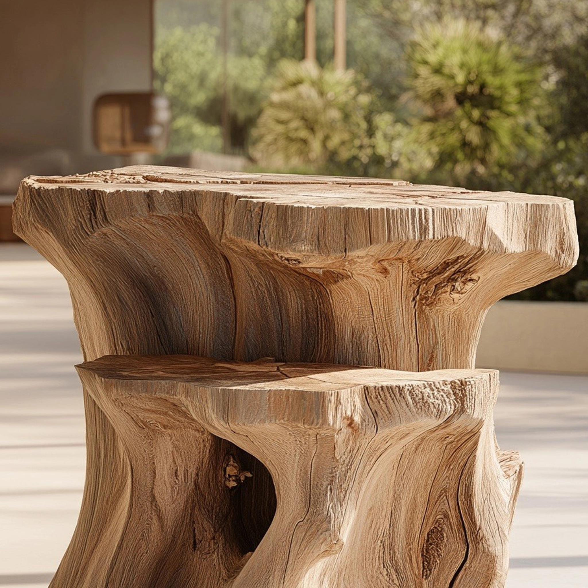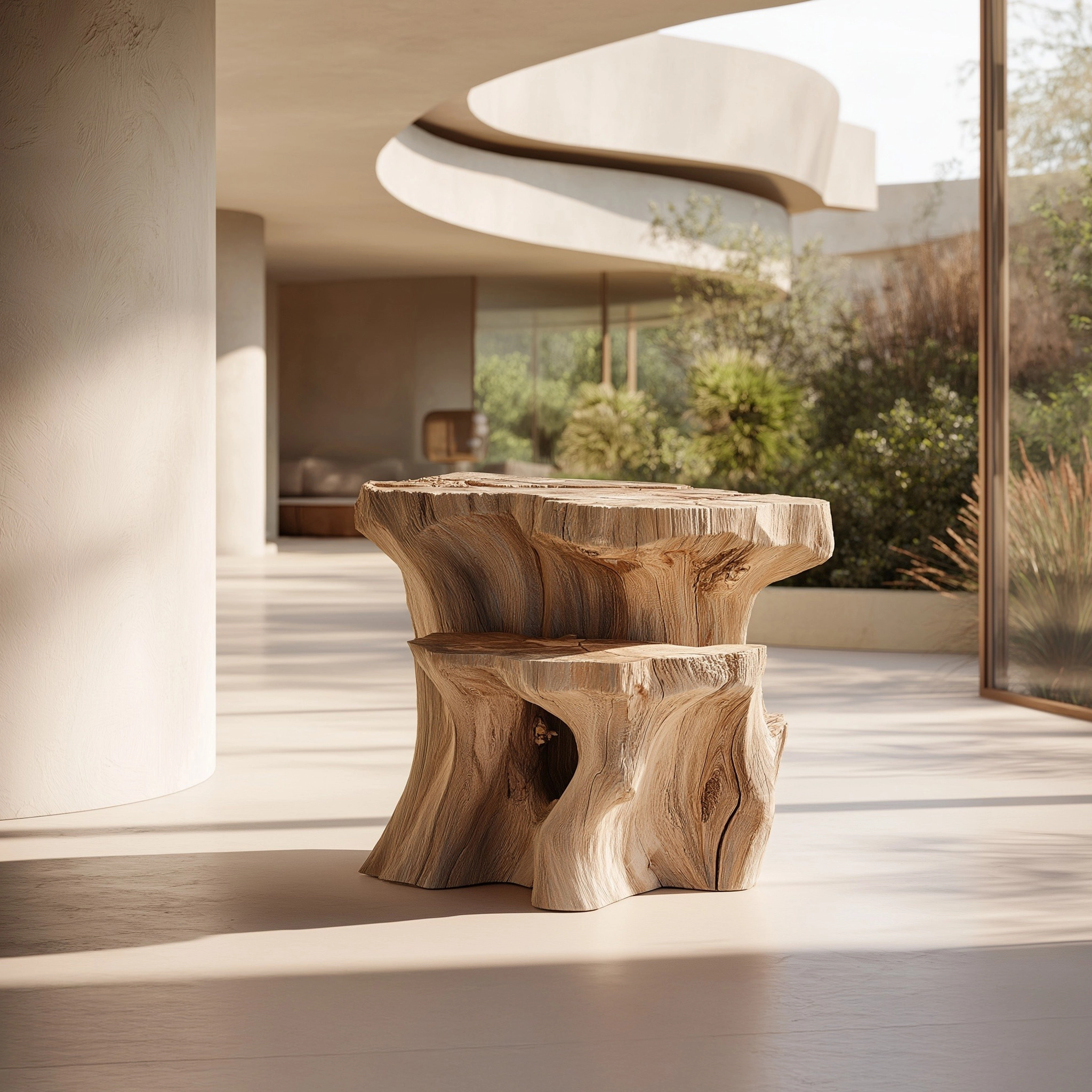 The Layered Form Solid Wood Sculptural Side Table is defined by its stacked composition and organic geometry. The design explores volume and proportion through a two-tier structure, creating a sense of depth while maintaining a calm, balanced presence.