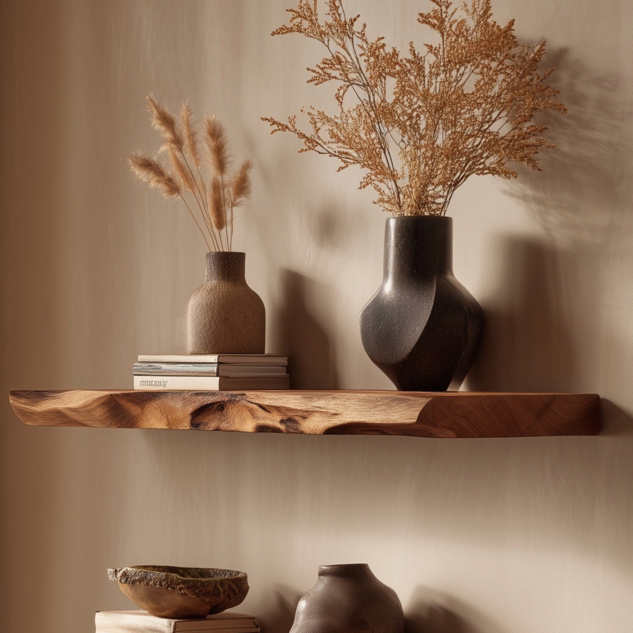 Well suited for organic modern, Scandinavian, wabi-inspired, and contemporary interiors, the shelves pair naturally with soft textiles, earth-toned palettes, and warm ambient light.