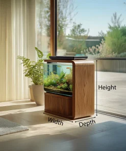 The Wooden Vertical Aquarium Side Cabinet with Display Window is designed as a compact furniture piece that integrates an aquarium viewing area within a tall, space-efficient form. Its vertical structure allows it to function as a side cabinet while visually presenting aquatic elements in indoor living spaces.
